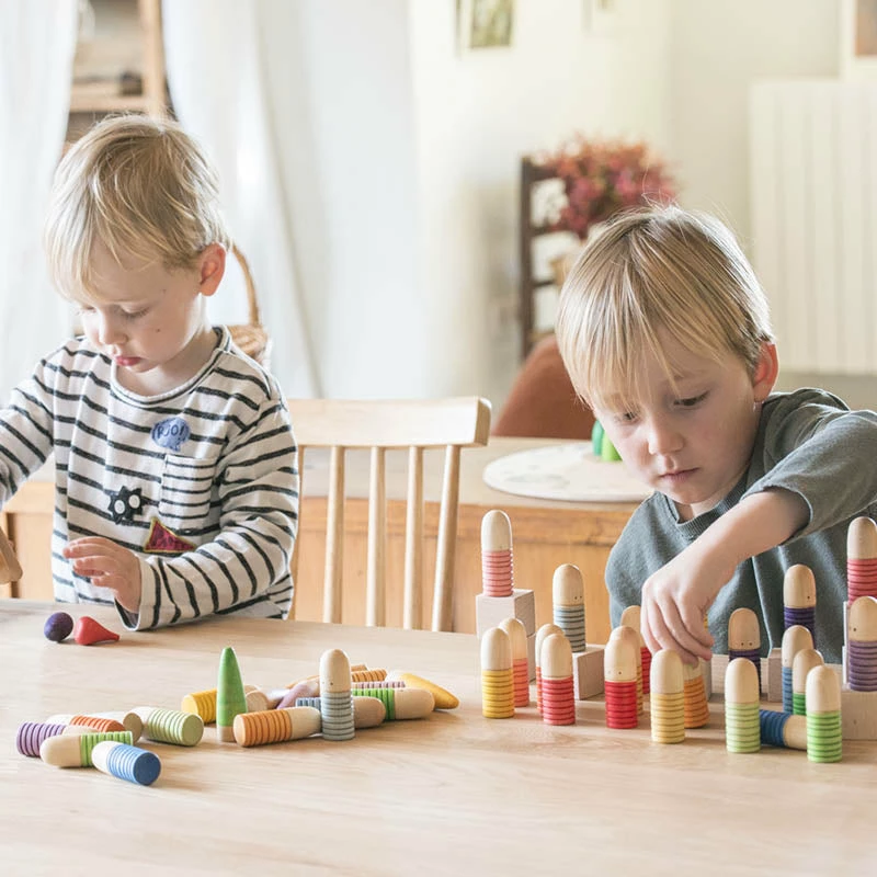 This wooden set by Grapat consists of 18 Brots in 6 bright colours and is great for educational play involving colour recognition, matching, sorting, grouping and more.